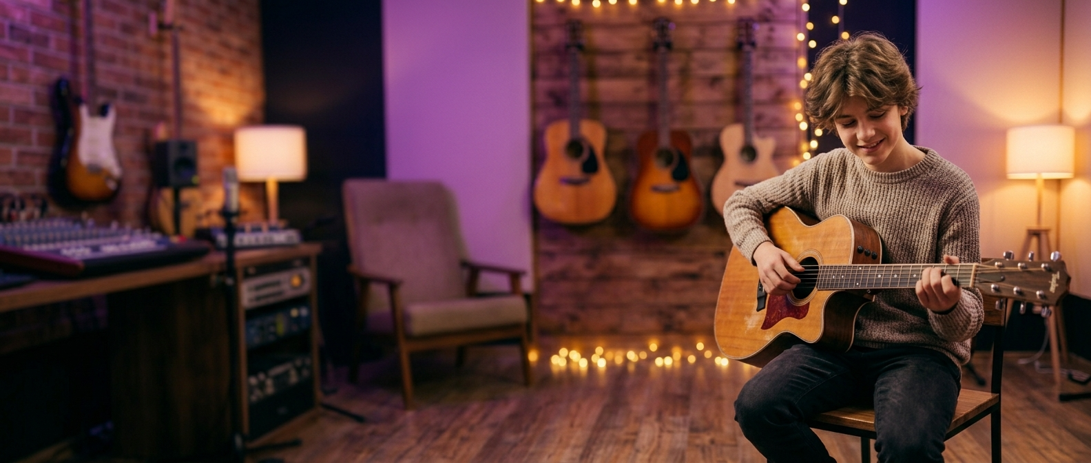Відкрийте мистецтво гри на гітарі прямо в Comfort Town. Акустична та електрогітара, укулеле. Від початкового рівня до впевненої гри.